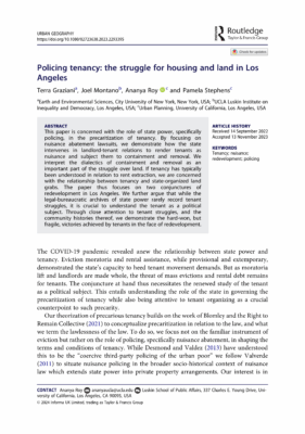 Download >> Policing Tenancy: The Struggle for Housing and Land in Los Angeles (Published January 11, 2024)